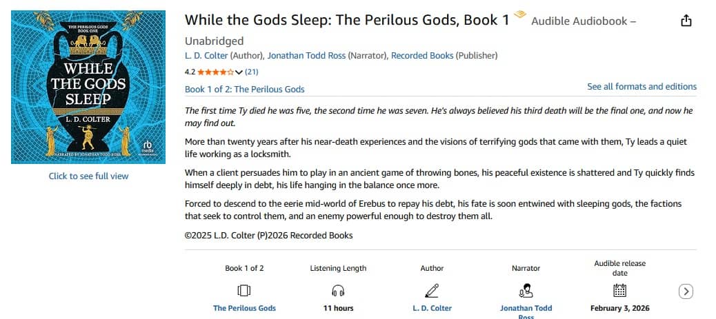 An occasional newsletter from a writer of weird things...Musings on writing, reading, and various piffle, but always a cute animal video. Three Weeks and Counting: Plus Reading a Novel by Keanu Reeves, How My MC's 2 Childhood Deaths Were Nearly My Own, and Animal Hugs Sept 4, 2025 While the Gods Sleep Book One of The Perilous Gods is currently on NetGalley and is set to release three weeks from today! What the early reviews are saying: And of course, this amazing endorsement: "The pleasures...