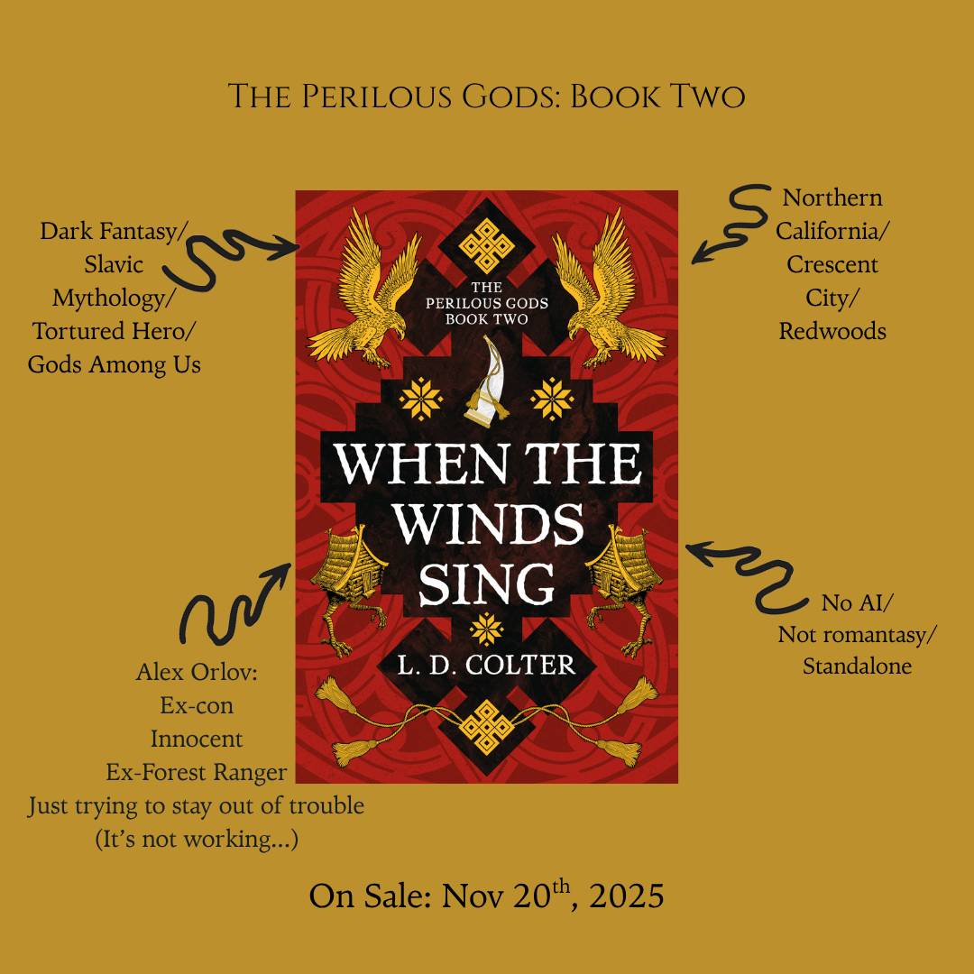 β Wow -- this month is jam-packed -- both this newsletter and my writing schedule, which is completely outta control right now. News for this month: Book two of The Perilous Gods, When the Winds Sing, releases today and you're in on the celebration!! I avoided the words "giveaway" and "free" in the subject line so emails wouldn't bounce, but YES a FREE ebook giveaway of When the Winds Sing to two newsletter winners -- find a link to the entry below. My Favorite Bit essay for book one is live on Mary Robinette Kowal's blog today! A promo with over 100 authors offering free reads! Plus audiobook news, Thanksgiving at an exotic animal rescue for the cute animal video, and more. Book birthday for While the Gods Sleep! And a little more background...YES, it's out today!!π₯³ After book one, While the Gods Sleep, which I based on Greek mythology, I wanted to pivot to less-commonly used lore. The inherent problem with that, of course, was that the info is hard to find. My friend, Alex Shvartsman, addressed this in the wonderful foreword he wrote for When the Winds Sing. You can read his full foreword about those challenges and learn the interesting real story behind the chicken legs on Baba Yaga's hut in his blog post here: https://alexshvartsman.com/2025/11/11/when-the-winds-sing-l-d-colter/β I gotta admit, my approach to learning for this book was pretty scattershot. I tried to mine for any characteristics of the gods and folklore creatures before the influence of Christianity that turned them into moral stories and demons, but obviously, that's pretty hard to find. I did get some interesting takes on Baba Yaga, though. The pantheons of gods also proved complicated to keep straight as they shift names, and sometimes qualities, with the various Slavic groups. I picked Stribog, in particular, as a main character precisely for being lesser known, and Morana, well...who can resist a goddess of winter and death. I also read a translation of "Viy" by Nikolai Gogol, a story first published in 1835, about Koschei the Deathless. My friend and sensitivity reader -- a SFF author born and raised in Siberia -- recommended it to show how Koschei is not just a sorcerer, but powerful enough to rule his own realm of enslaved souls. The really fun discovery, though, was Likho, the embodiment of misfortune. Like each book in this set, I made my main character again an "everyman." However, pitting a mortal against a pantheon of gods was unfair to him and pretty impossible for me as an author, so I made Likho his personal antagonist. Granted, having misfortune incarnate deciding to target you with a campaign of misery is no cakewalk, but with three actual gods in the vicinity, it at least gave my tortured hero, Alex, a fighting chance. As for picking the setting: My other two books (chronologically, When the Winds Sing was written last of the three) take place in other countries with settings and cultures that took a pretty overwhelming amount of research. For this book, I wanted an American protagonist (second-generation Russian) and a setting I was familiar with, so I placed the story on the coast in far Northern California, fifty miles north of an area where I lived for a dozen years. In my last newsletter I listed a few "cool or creepy" things about Crescent City. (Dead Lake, haunted lighthouse, giant redwoods...) If you missed it, you can read about those here: βhttps://l-d-colter-speculations.kit.com/posts/the-halloween-edition-cool-or-creepy-crescent-city-stuff-free-ch-1-cute-animal-videoβ In addition to the places in the book that are real, there's also one scene that uses something from my past. I've never shared this in a post before, and probably won't on public social media, 'cause, yeah, a real story about a real person, but it's one of those "truth is stranger than fiction" things that you just gotta tell someone. When I was coming up with ideas for things Likho might do in the story, I couldn't resist adding one of the most unfortunate coincidences I've ever run across in my life. Many (many) years ago, I was a paramedic in a major city. I didn't personally go on this call, but heard about it from someone who did: A man had the misfortune to get a flat tire on a busy interstate. He was changing the rear tire when a semi truck carrying a load of... yes... tires passed him. Right as the truck went by, a tie-down came loose. One tire went flying off the stack and hit the man in the back of the head, killing him instantly. Sad but true story. And, like myriad other snippets of things I've seen or done or heard across my life, it's made it at last into one of my books. For even more background on writing this novel, author Myna Chang was good enough to interview me about When the Winds Sing here: β https://mynachang.com/2025/11/18/author-interview-l-d-colter/β And another blog feature: MRK's Favorite Bit FeatureMany thanks to Mary Robinette Kowal for featuring my essay on "my favorite bits" from book one, While the Gods Sleep!! Click the link to read my thoughts on my literary influences for the book, my love of mythology, and Ty's two childhood near-death experiences, which were actually my own. β βhttps://maryrobinettekowal.com/journal/my-favorite-bit/my-favorite-bit-l-d-colter-talks-about-while-the-gods-sleep/β β β β It's happening -- Audiobooks are coming!!!I hinted to y'all first before anyone else knew, and now the news is out. Recorded Books has just posted the preorder info! The link below goes to Audible, but you can order it through your favorite bookseller. Release date is Feb 3, 2026. Books two and three will follow. I don't have the schedule yet, but I'd guess a month or so apart. β βhttps://www.audible.com/pd/While-the-Gods-Sleep-Audiobook/B0G26RK2K7β β I promised you free stuff, so here you go!First up, I'm giving away TWO free epub copies of When the Winds Sing π I had to get creative on this because, thanks to scammers multiplying exponentially with AI help, I have m